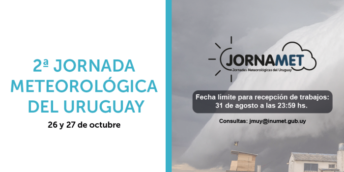 El Instituto Uruguayo de Meteorología se complace en anunciar la 2° Jornada Meteorológica del Uruguay (JORNAMET), que se llevará a cabo los días 26 y 27 de octubre del presente año.
