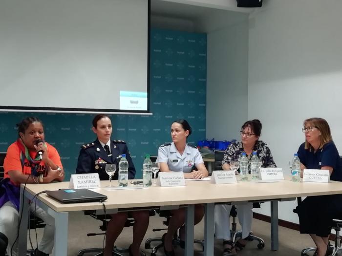 En el marco de la conmemoración del Día Internacional de la Mujer, la Comisión de Género de Inumet convocó a los y las funcionarios a una instancia de charlas y reflexión con la participación de mujeres referentes del ámbito local como ser, TTe. 1°(Nav) Jessica Acuña de FAU, Sub Comisario Mariela Vivone de Dirección Nacional de Bomberos, Chrystin Delgado funcionaria de Cutcsa y Carmen Couselo primer mujer conductora de ómnibus de empresa Cutcsa y la Sra. Chabela Ramírez música, activista y Directiva de la Casa de la Cultura Afrouruguaya, dando cierre a la actividad en la voz de Gabriela Rodríguez y sonidos de tambor a cargo de Chabela.