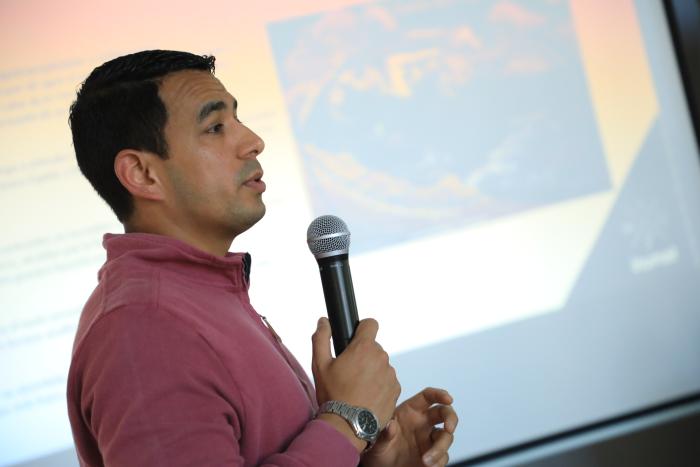 Las ponencias fueron realizadas por la Ing. Quím. Jimena Risso (directora de la Unidad Calidad de Agua de la IMM), Ing. Mario Bustamante (director de la División Coordinación Regional Sur y jefe de la Oficina Regional Rio Negro del Ministerio de Ambiente), representantes del Grupo de trabajo Ambiente y DDHH de la cátedra Unesco de DDHH de la UdelaR, y por nuestro instituto el Met. Néstor Santayana (director de Meteorología y Clima para la Sociedad); estando a cargo de la moderación del evento la edil Estela Pereyra (presidente de la Comisión Medio Ambiente y Salud de la Junta).