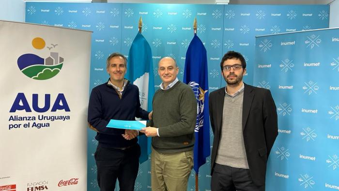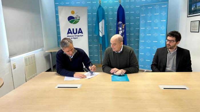 El Instituto Uruguayo de Meteorología (INUMET) ha formalizado un convenio marco en colaboración con la Organización No Gubernamental (ONG) Alianza Uruguaya por el Agua. En este acto estuvieron presentes el presidente Cnel. (R) Lic. Pablo Cabrera y el director Dr. Diego Plada, representantes de INUMET, junto con el Cr. Mauro De la Vega, director de Alianza Uruguaya por el Agua.