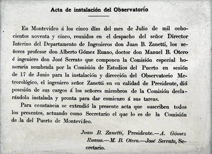 Con fecha de inauguración el 5 de julio de 1895 se inaugura la Estación Meteorológica de Antepuerto siendo el primer Director el Prof. Alberto Gómez Ruano y su primer Observador Hamlet Bazzano. Como Observatorio del Puerto, más tarde sirvió de base para la creación del Instituto para la Previsión del Tiempo, luego Instituto Meteorológico Nacional.